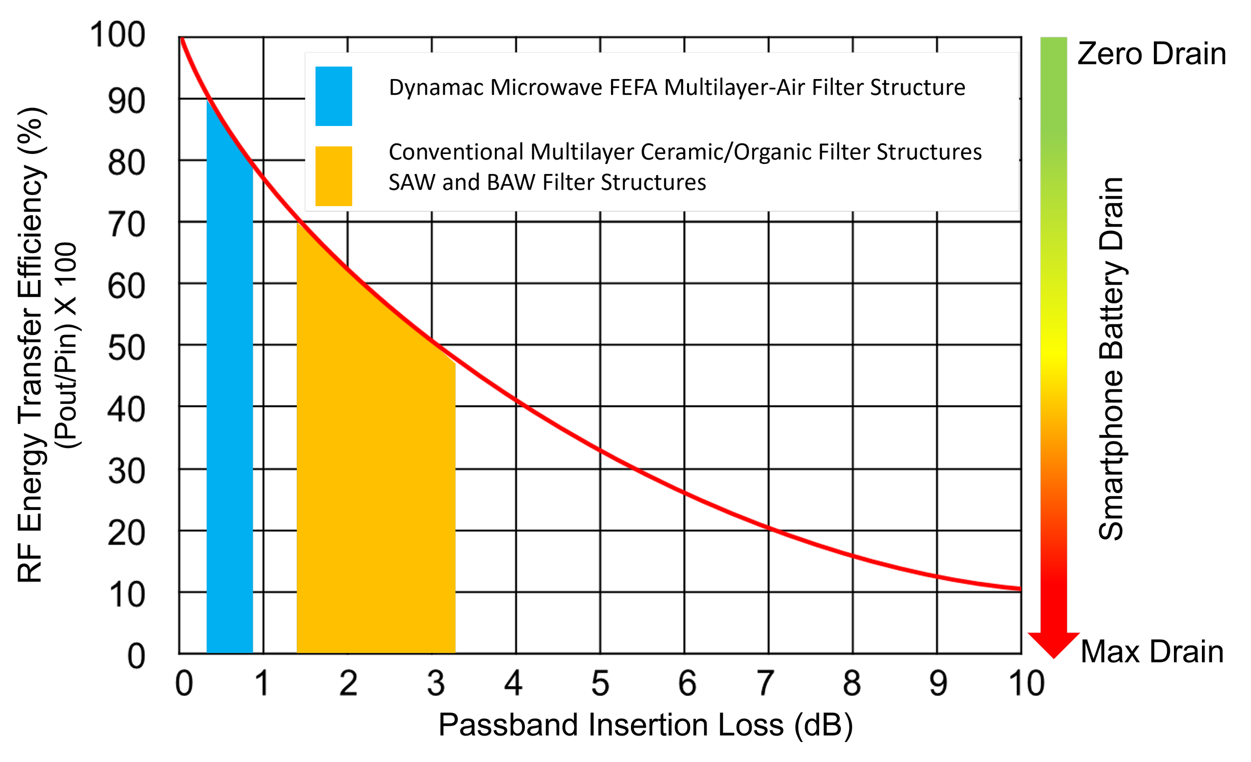 30-65% lower insertion loss than current filters (SAW, BAW, multilayer ceramic and PTFE, air cavity, and waveguide filters).